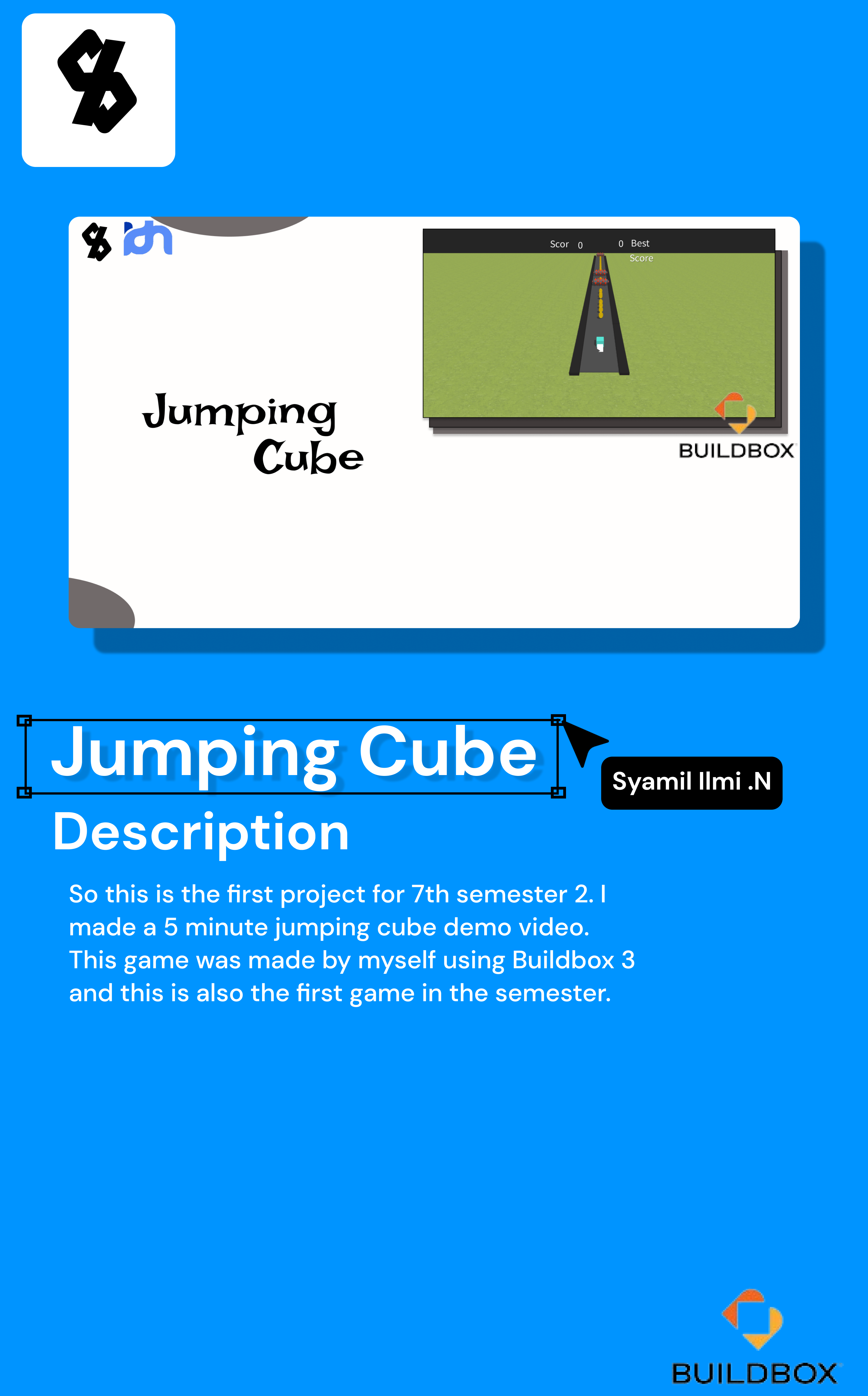 So this is the first project for 7th semester 2. I made a 5 minute jumping cube demo video. This game was made by myself using Buildbox 3 and this is also the first game in the semester.
