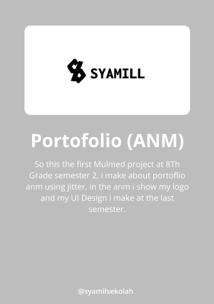So this the first Mulmed project at 8Th Grade semester 2, i make about portoflio anm using jitter, in the anm i show my logo and my UI Design i make at the last semester.