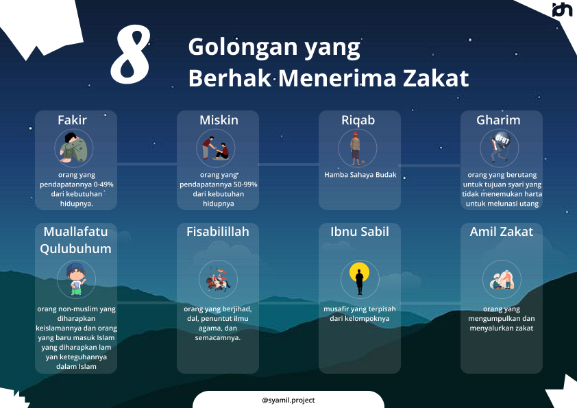 - Amil Zakat : orang yang mengumpulkan dan menyalurkan zakat
