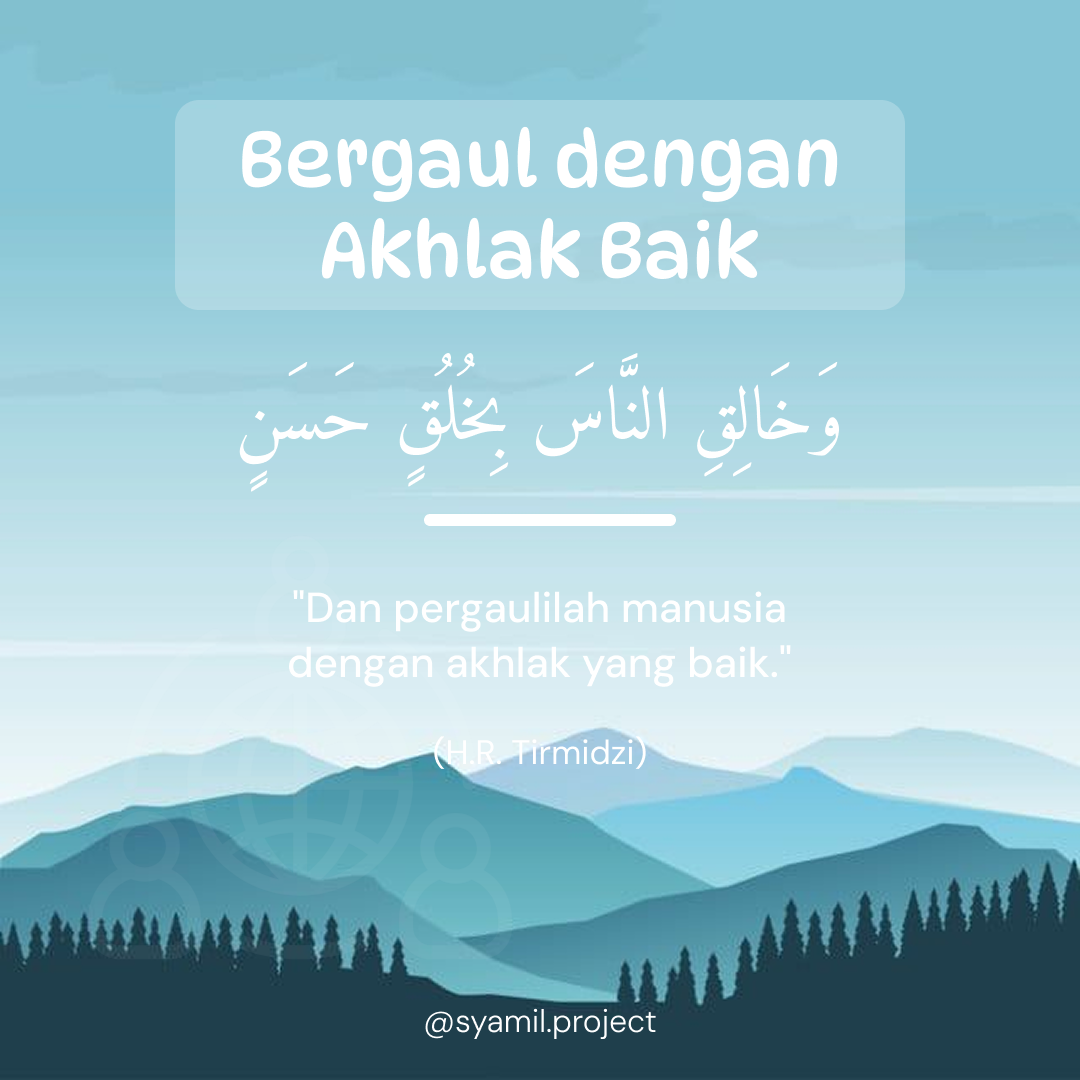 Hello everyone, so this the second project i make poster adab, Bergaul Dengan Akhlak Baik, i make in figma, and the refrensi from my pinterest. This project is an Islamic-themed poster design that conveys a moral message about the importance of associating with good morals. This poster displays a hadith quote from H.R. Tirmidzi, with the main text in Arabic and a translation in Indonesian.