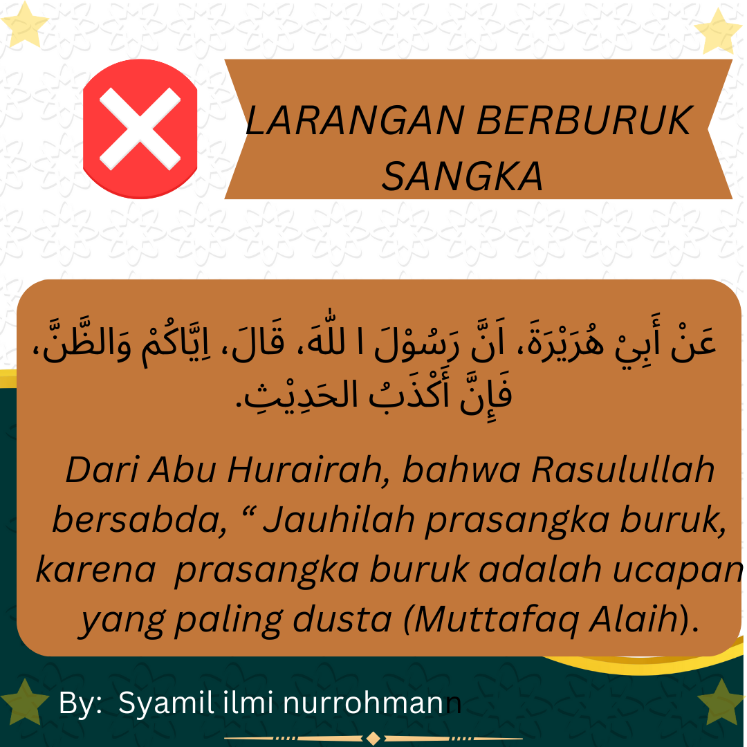 Hi everyone, this the first project i make poster Hadis about Larangan Berburuk Sangka, I design use canva